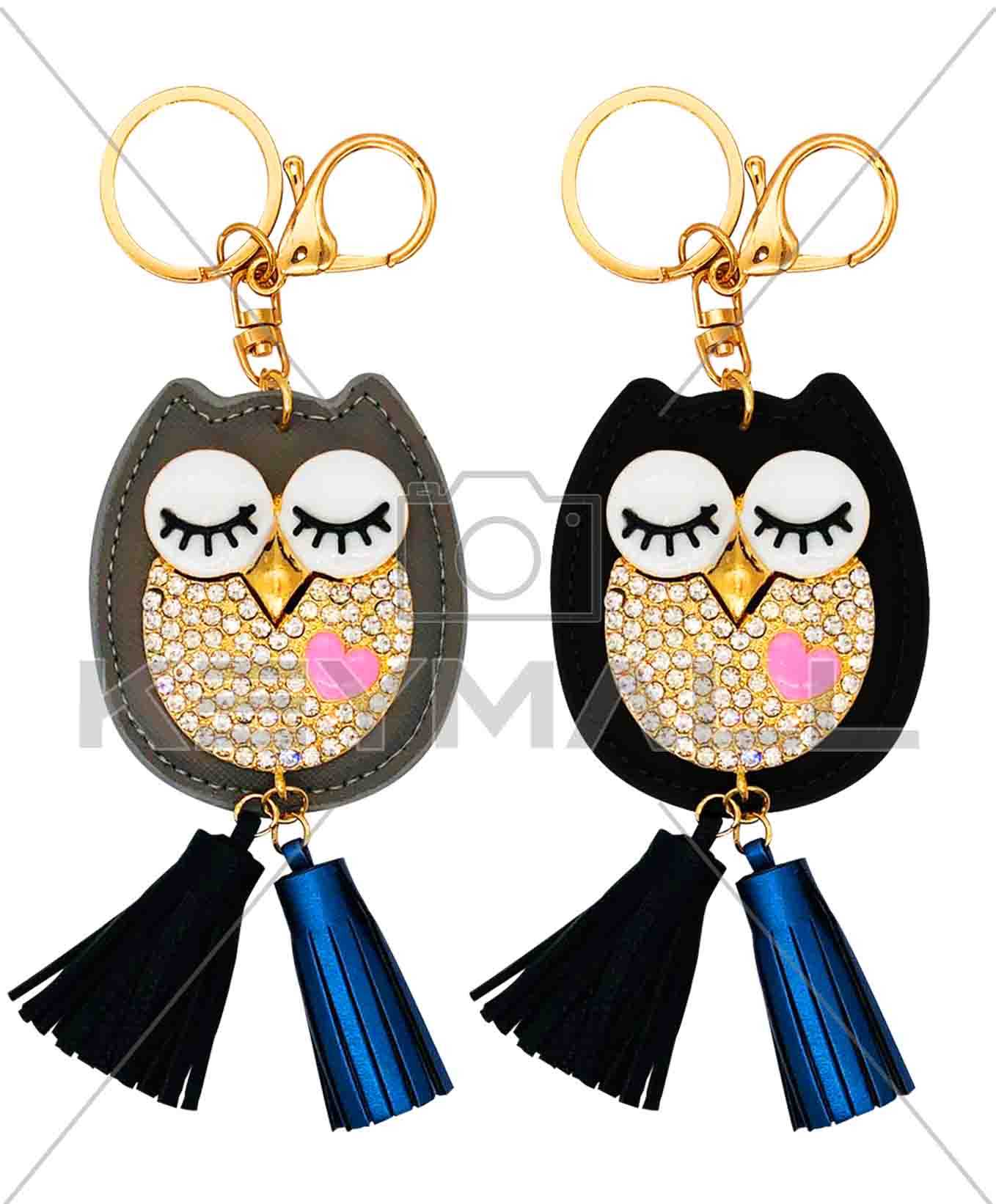 LLAVERO BUHO GRIS NEGRO CON BRILLANTES